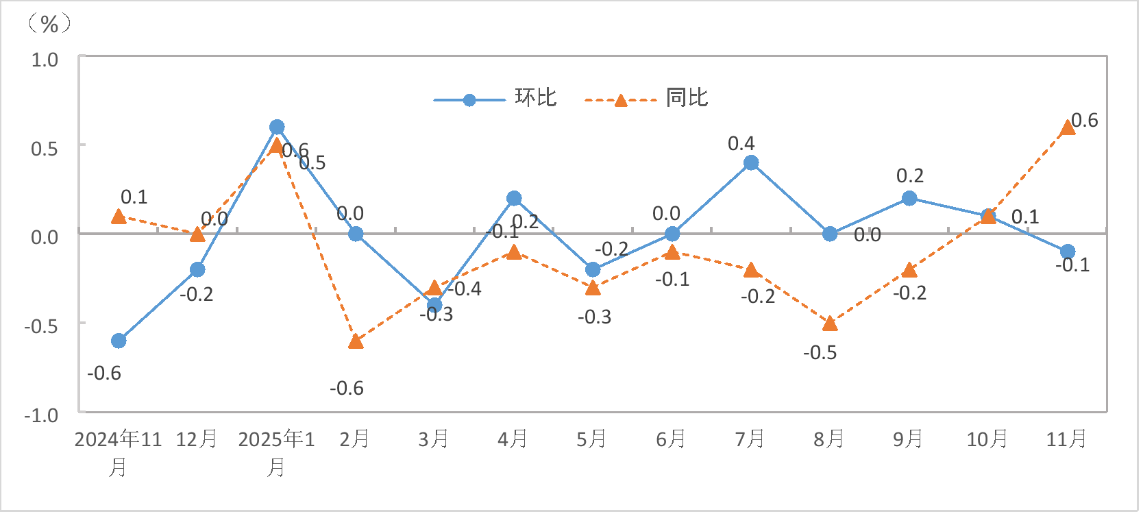 图1  湖南居民消费价格涨跌幅(2024.11-2025.11,单位:%)