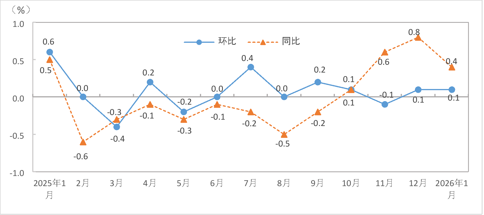 图1 湖南居民消费价格涨跌幅(2025.1-2026.1)