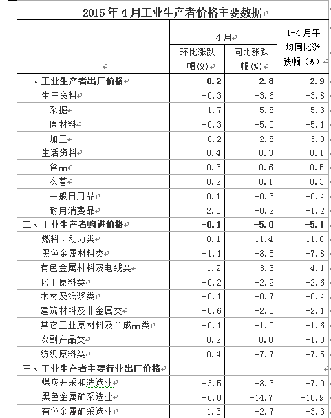 4月份,全省工业生产者出厂价格同比下降2.8%,环比下降0.2%。工业生产者购进价格同比下降5.0%,环比下降0.1%。