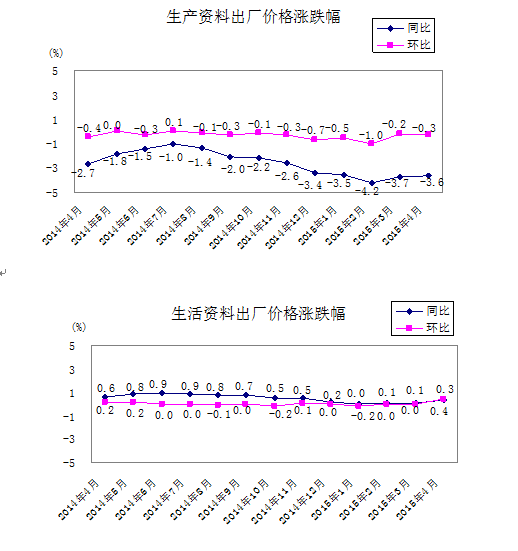 工业生产者出厂价格中,生产资料价格环比下降0.3%,影响全省工业生产者出厂价格总水平下降约0.3个百分点。其中,采掘工业价格下降1.7%,原材料工业价格下降0.3%,加工工业价格下降0.2%。生活资料价格上涨0.4%。其中,食品价格上涨0.3%,衣着价格上涨0.2%,一般日用品价格上涨0.1%,耐用消费品价格上涨2.0%。