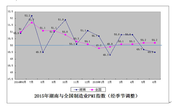 6月湖南制造业PMI为49.5%