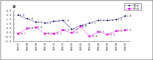 图1 7月份湖南消费价格涨跌幅(2014.07-2015.07)