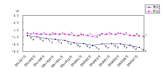 图1 工业生产者出厂价格涨跌幅(2014.7-2015.7)