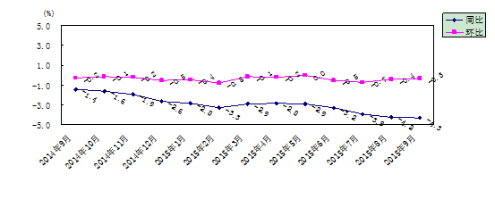 图1 工业生产者出厂价格涨跌幅(2014.9-2015.9)
