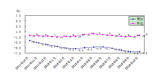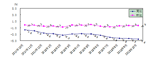图1 工业生产者出厂价格涨跌幅(2014.10-2015.10)
