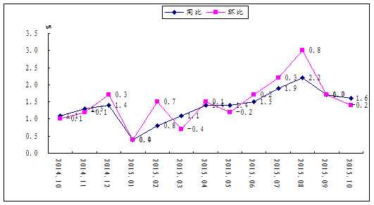 图1 湖南消费价格涨跌幅(2014.10-2015.10)