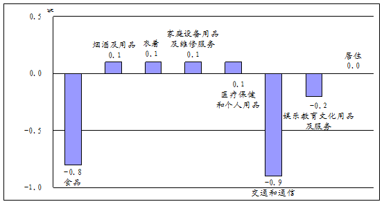 交通和通信价格同比下跌1.3%。其中,车用燃料及零配件价格下跌12.4%,通信工具价格下跌0.7%,交通工具价格下跌1.6%,车辆使用及维修费上涨0.2%。