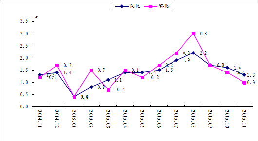 图1 湖南消费价格涨跌幅(2014.11-2015.11)