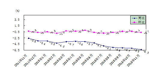 图1 工业生产者出厂价格涨跌幅(2014.11-2015.11)