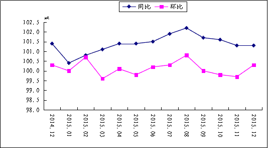 图1 湖南消费价格涨跌幅(2014.12-2015.12)