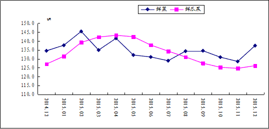 图3 鲜菜、鲜果价格变动情况(2010年12月价格=100)