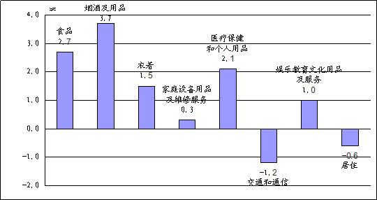 烟酒及用品价格同比上涨3.7%。其中,烟草价格上涨5.3%,酒类价格上涨0.3%。