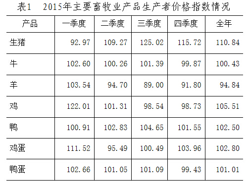 其它畜牧业产品中,除羊的价格有所下跌之外,牛、鸡、鸭、鸡蛋和鸭蛋的价格均有所上涨(见表1)。