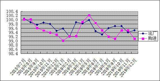 1-4月,工业生产者出厂价格环比指数分别为99.6%、99.2%、99.9%、99.8%,5月持平,6-12月为分别为99.5%、99.3%、99.6%、99.7%、99.7%、99.4%、99.5%,呈现小幅波动态势。其中,生产资料出厂价格环比指数除5月持平外,其他月份均在下降区间运行,降幅在0.2—1个点之间;生活资料出厂价格止跌企稳,环比指数1月下降0.2%、5月下降0.1%,2、3、7、9月持平,有6个月环比指数上涨。工业生产者购进价格环比指数除5月上涨0.2%以外,其他月份有不同程度下降。