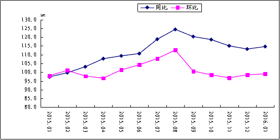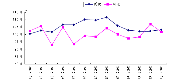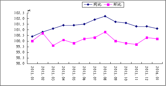 图1 湖南消费价格涨跌幅(2015.01-2016.01)