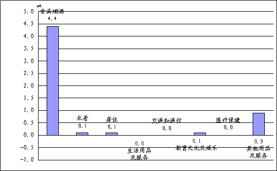非食品烟酒价格环比上涨0.1%。其中其他用品和服务类价格上涨0.9%;衣着、居住、教育文化和娱乐类价格均上涨0.1%;生活用品及服务类价格、交通和通信、医疗保健类价格价格均与上月持平。
