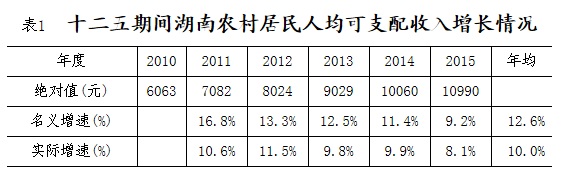 “十二五”时期湖南农村居民收入增长特点及“十三五”增长趋势分析