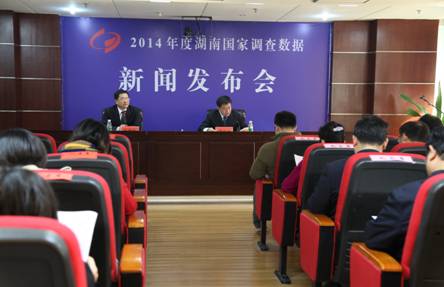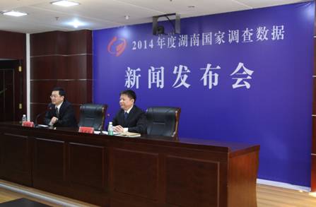 总队党组书记、总队长庞晓林发布了2014年度湖南居民收支、市场物价、农业生产、规下工业、制造业采购经理指数等主要统计调查数据,并就新常态下居民收入变化特点、市场物价变动趋势、国际油价下跌对我省经济的影响、全省生猪生产等热点问题回答了记者提问。