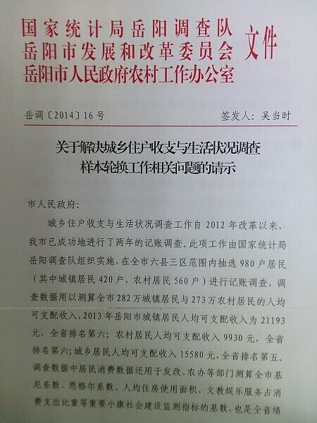 总队住户调查工作会议后,市发改委、市农办领导于9月30日来到岳阳队,了解住户调查换户工作,并表示将给予积极配合和大力支持。